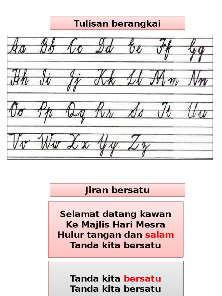 Contextual translation of tulisan berangkai into english. Tulisan berangkai in english lower case fake calligraphy letters lettering guide fake calligraphy lettering alphabet fonts buku teks bahasa melayu tahun 3 sk. Tulisan berangkai in english malayhanab.